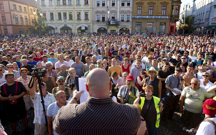 Bez vážnìjších konfliktù èi incidentù se v pátek 26. srpna 2011 obešlo zakázané shromáždìní ve Varnsdorfu i pozdìjší akce v Rumburku (na snímku) proti narùstající kriminalitì. MIKULÁŠ KØEPELKA / MEDIAFAX